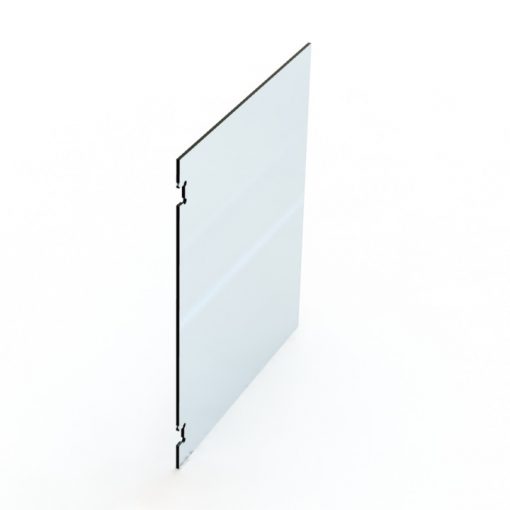 Glass Panels with custom cutout to allow for a perfect fit of Polaris hinges. The Polaris hinged panels are available in 100mm increments between 1000mm and 2000mm. This range of sizes allows you to configure your standard and hinge panels such that you can get a consistent panel size along the run.